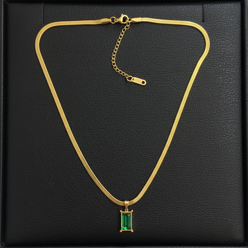 - 18K Gold Plated Snake Chain with Green Crystal Pendant