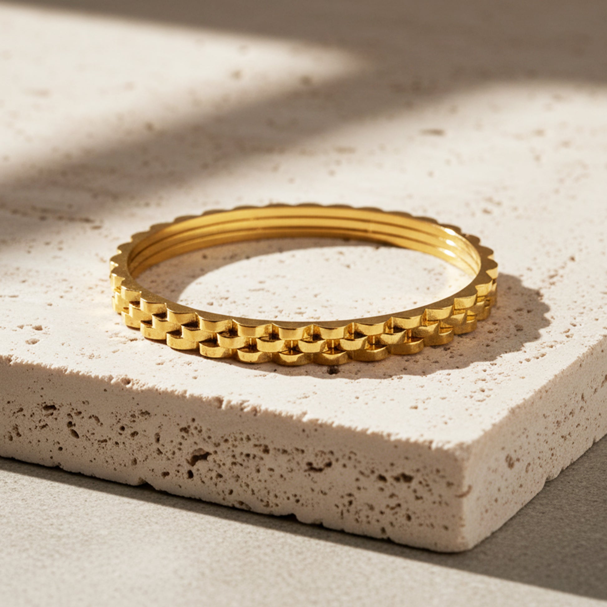 - Stacked Design Pattern: Unique texture that mimics multiple bangles in one.