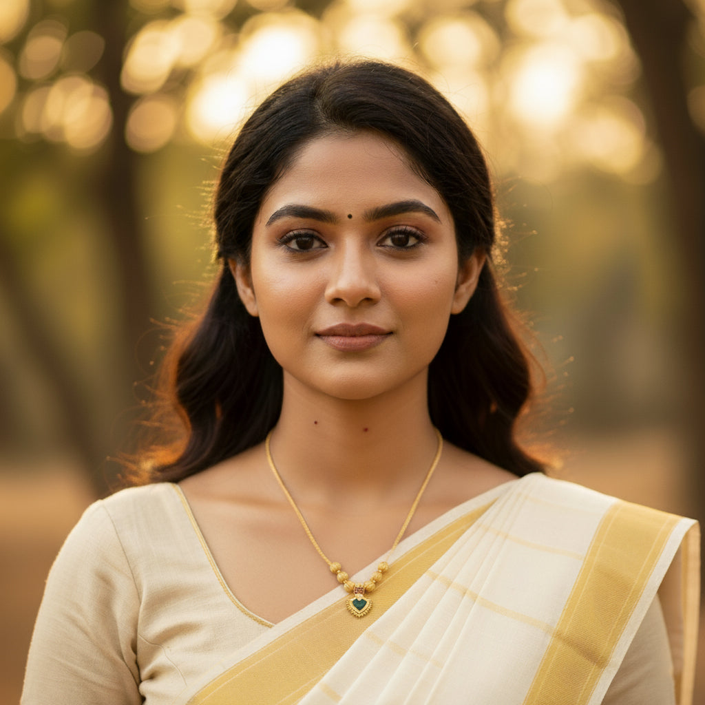 Elevate your ethnic look with this stunning 22K Gold Plated Palakka Green Stone Pendant Necklace, inspired by traditional Kerala jewellery. The rich green stone, glossy gold finish, and elegant pendant style make it a perfect accessory for festivals, weddings, and daily wear. Designed for women and girls who love timeless temple jewellery.