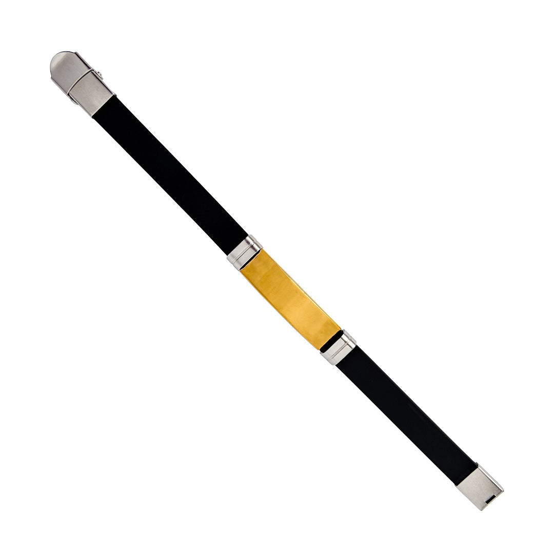 Men’s Black Strap Bracelet with Gold Plate – Stainless Steel Modern Design